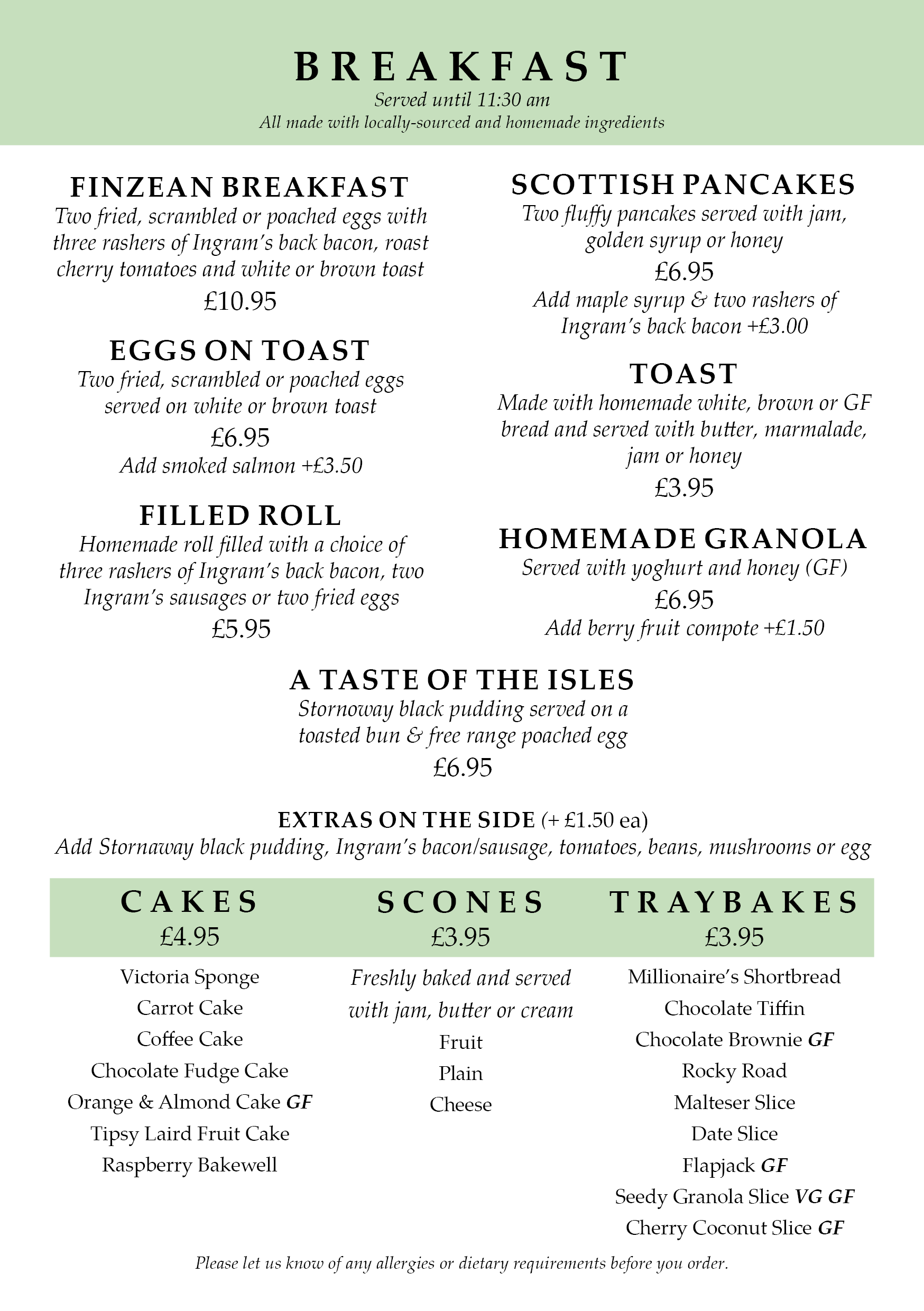 add Stornaway black pudding, Ingram’s bacon, Ingram's sausage, tomatoes, mushrooms or egg for £1.50 each