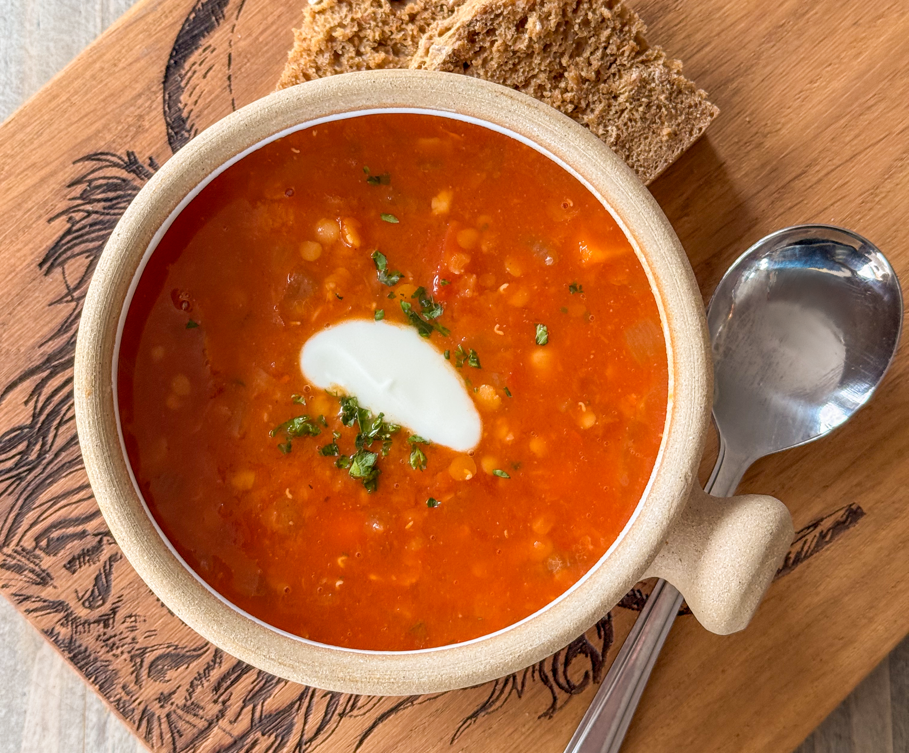 Soup & Hummus & Chargrilled Vegetable sandwich
