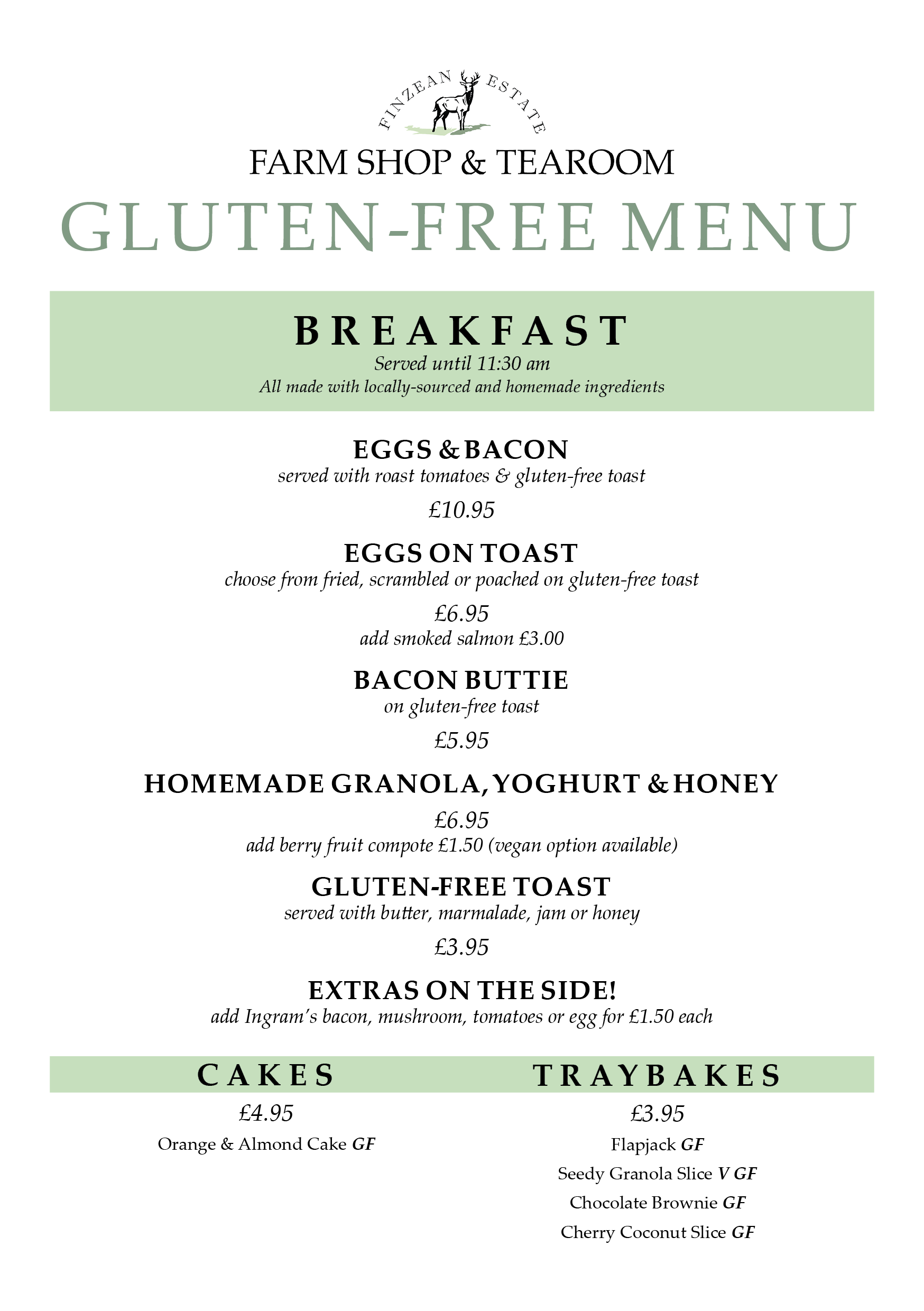 We have several gluten-free options available in the farm shop for breakfast, lunch and cakes. Our soup specials are almost always gluten-free (ask our staff) and we often have gluten-free special dishes like our Beetroot & Goat’s Cheese Salad, Salmon & Cream Cheese Frittata or our Coronation Chicken Salad. Many of our regular dishes can be adapted to be gluten-free with gluten-free bread or oatcakes.