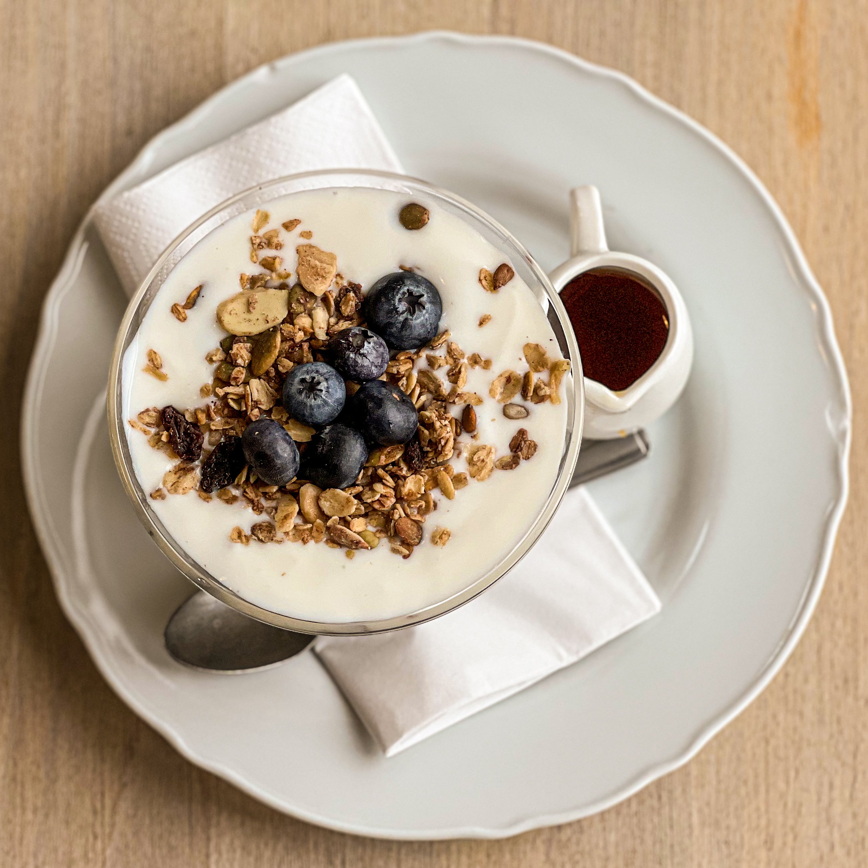 - Homemade Granola, Yoghurt & Honey with berry fruit compote