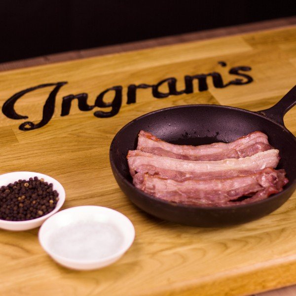 Sandy Ingram's of Aberdeenshire Streaky Bacon is produced using traditional dry curing techniques. A mixture of natural salts and sugars are rubbed into the surface of the meat to allow natural absorption. This process can take up to 4 weeks a fantastic product.