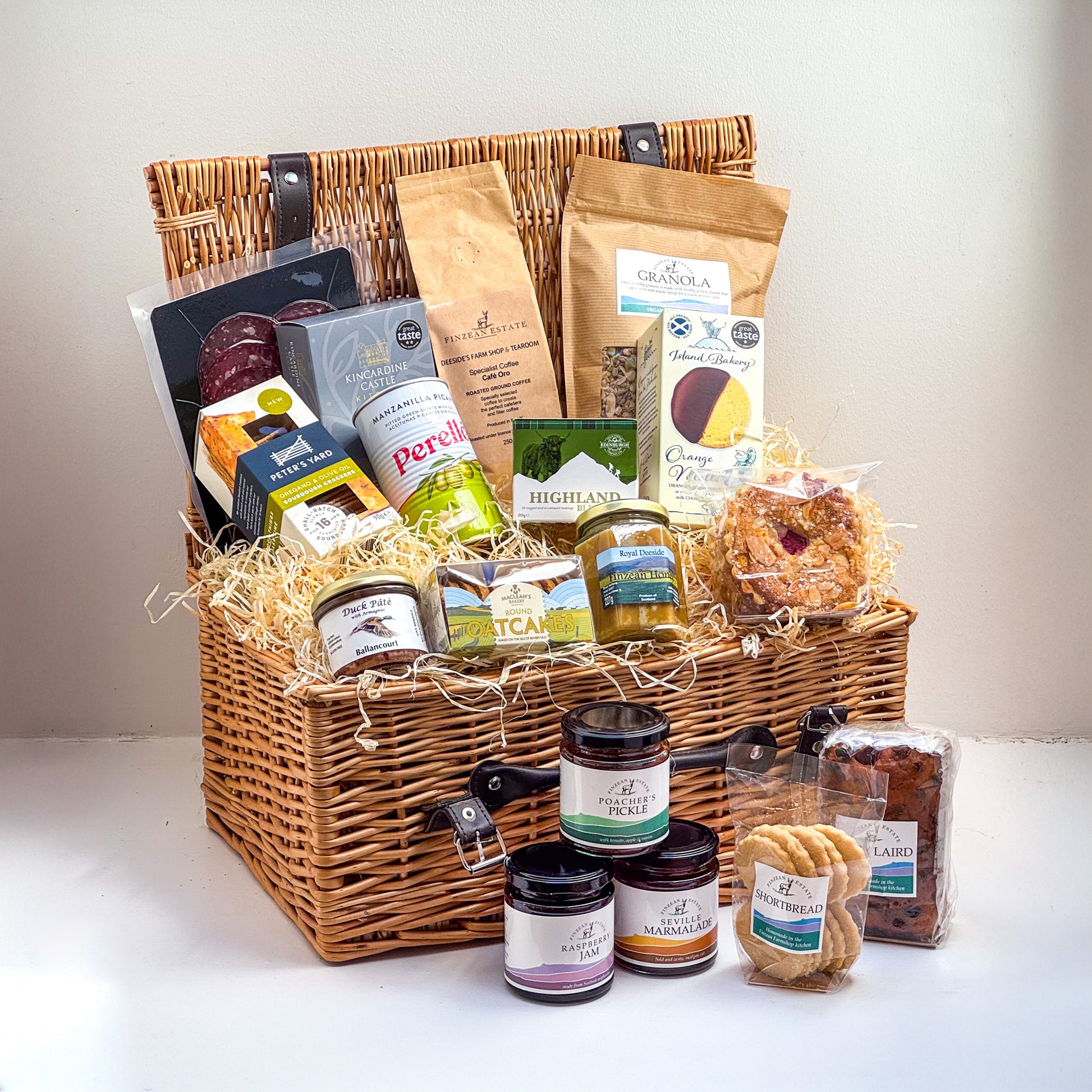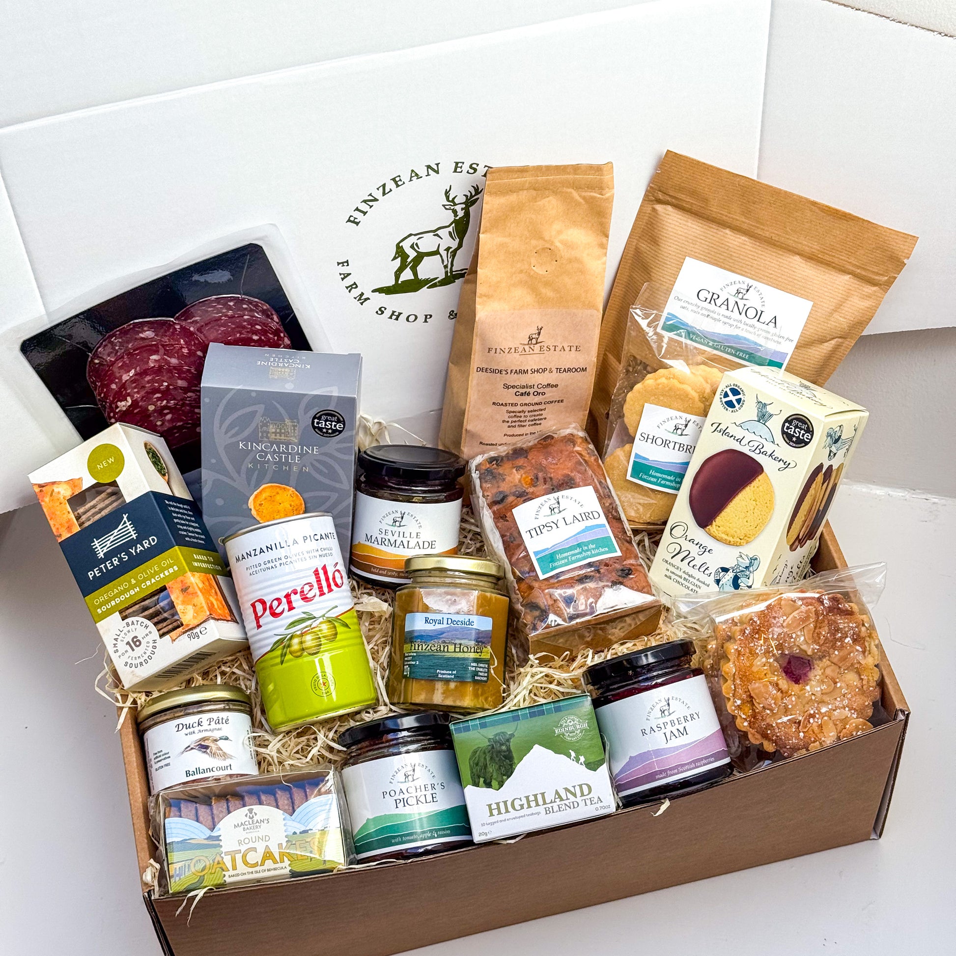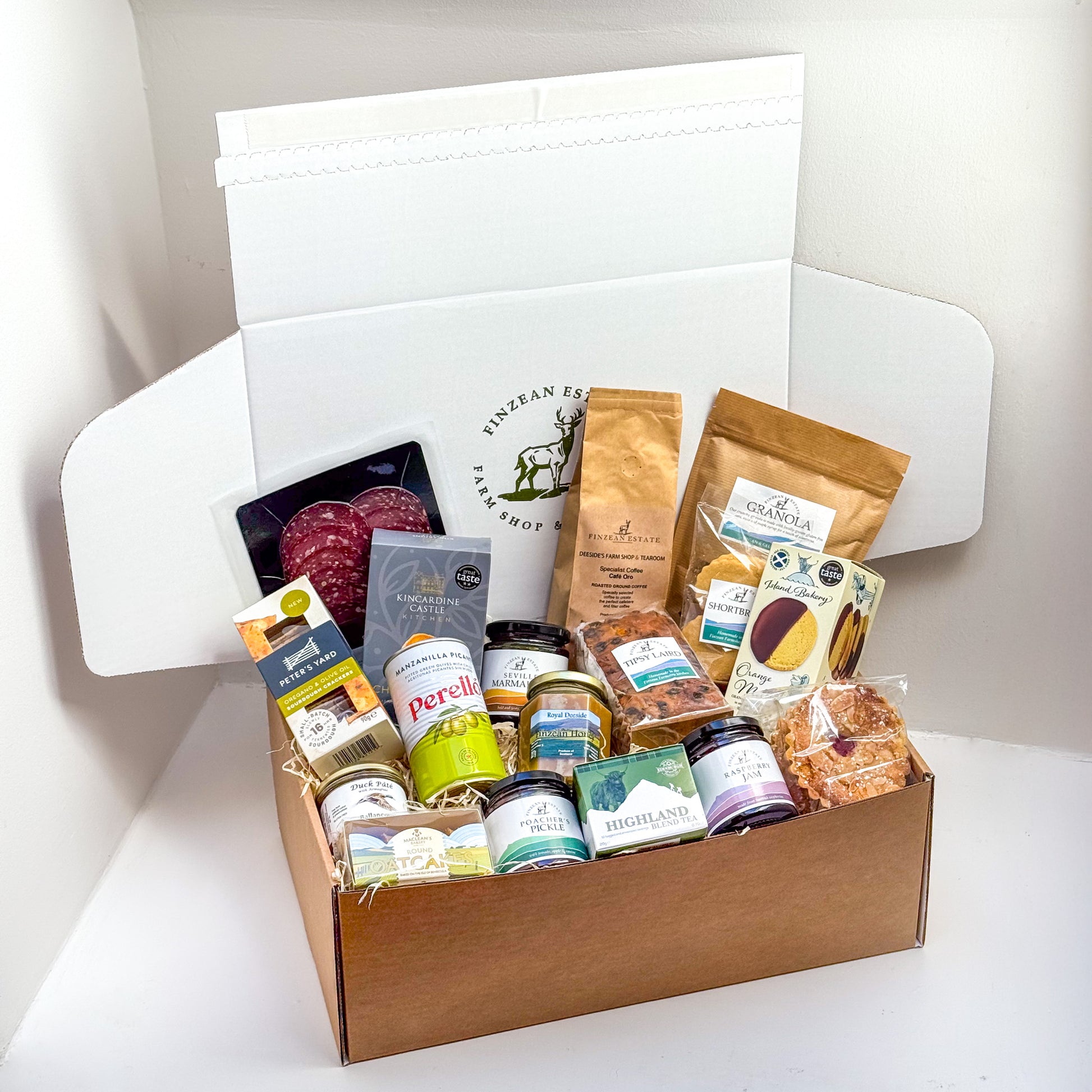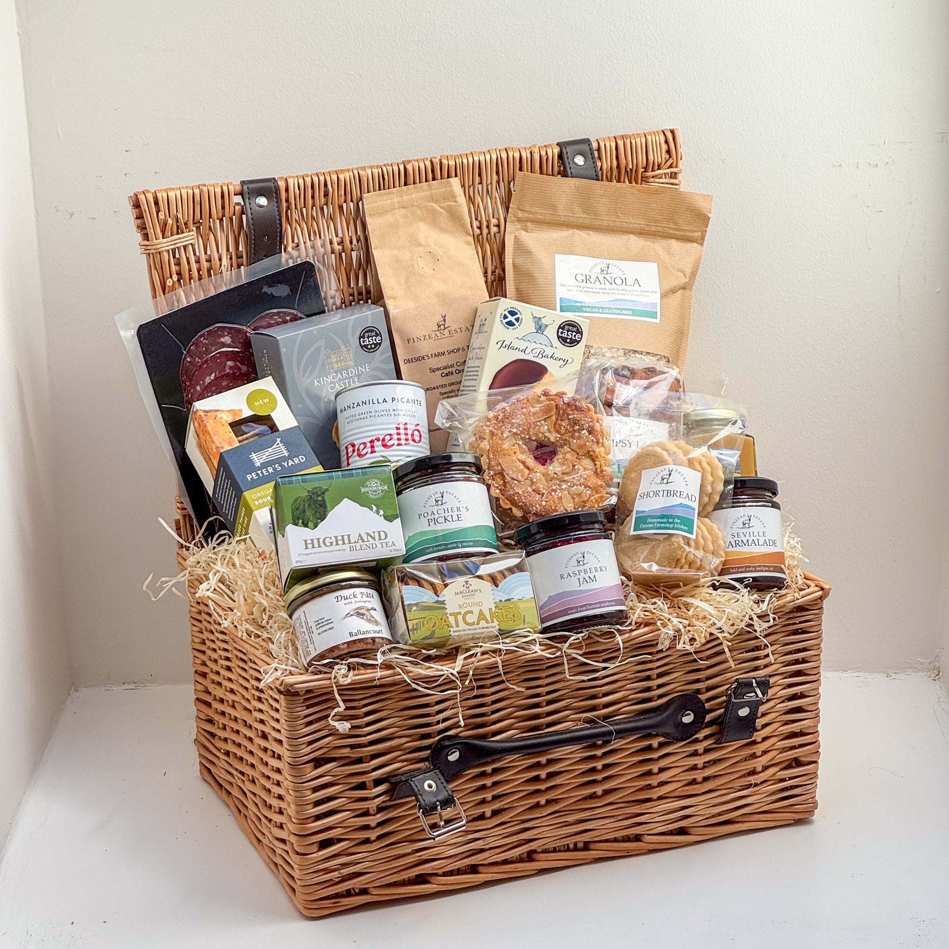 Our Artisan Selection Hamper is full of homemade and local products and makes a great gift. Hampers are packed in a Finzean hand-stamped sealed cardboard box (there is no inner box) and are available for UK delivery or collection from the shop unless you choose a jute bag or a wicker basket (collection only). Please allow three to five days for delivery.