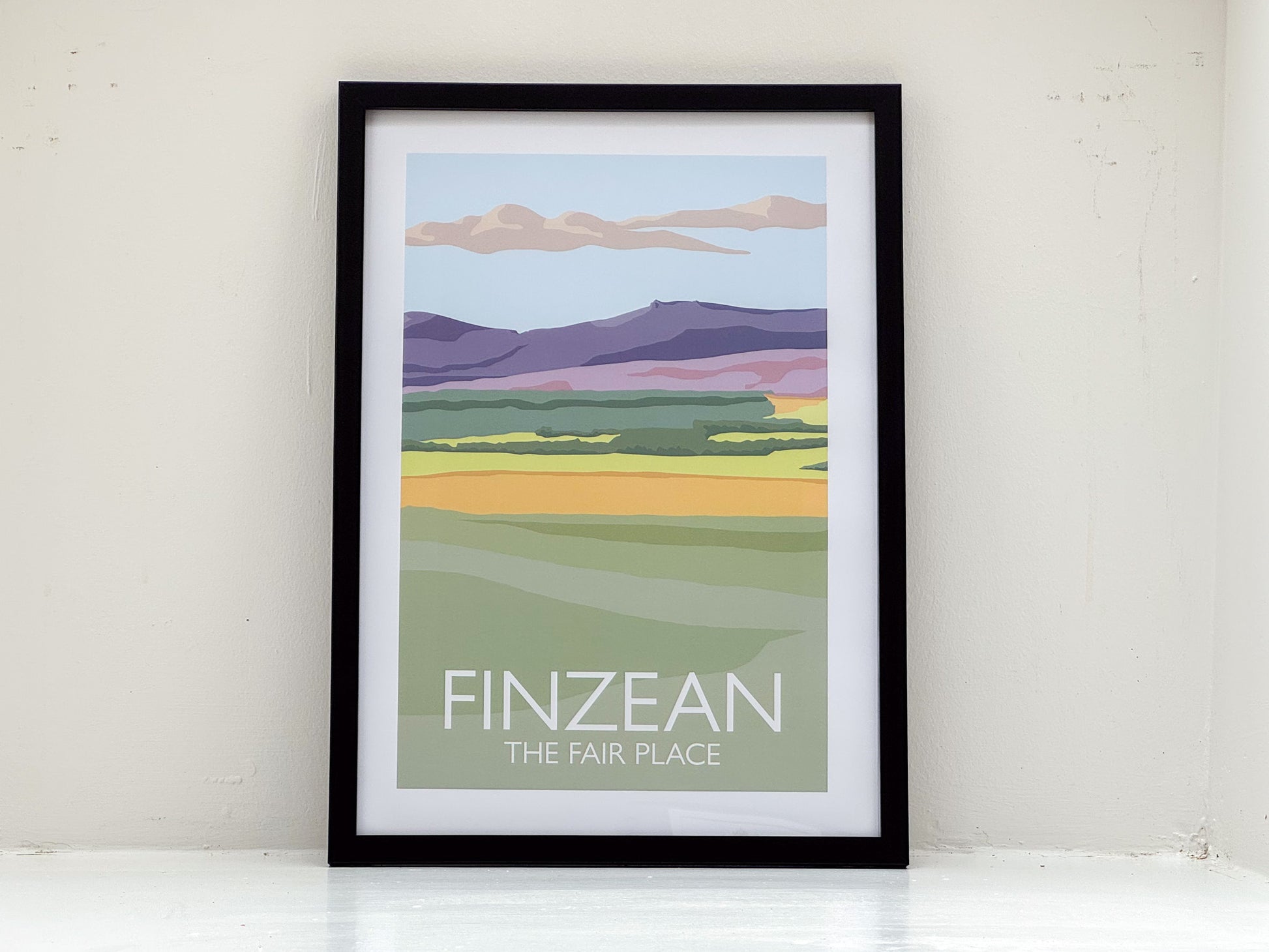 A3 sized Finzean poster in an A3 poster frame with acrylic glass.