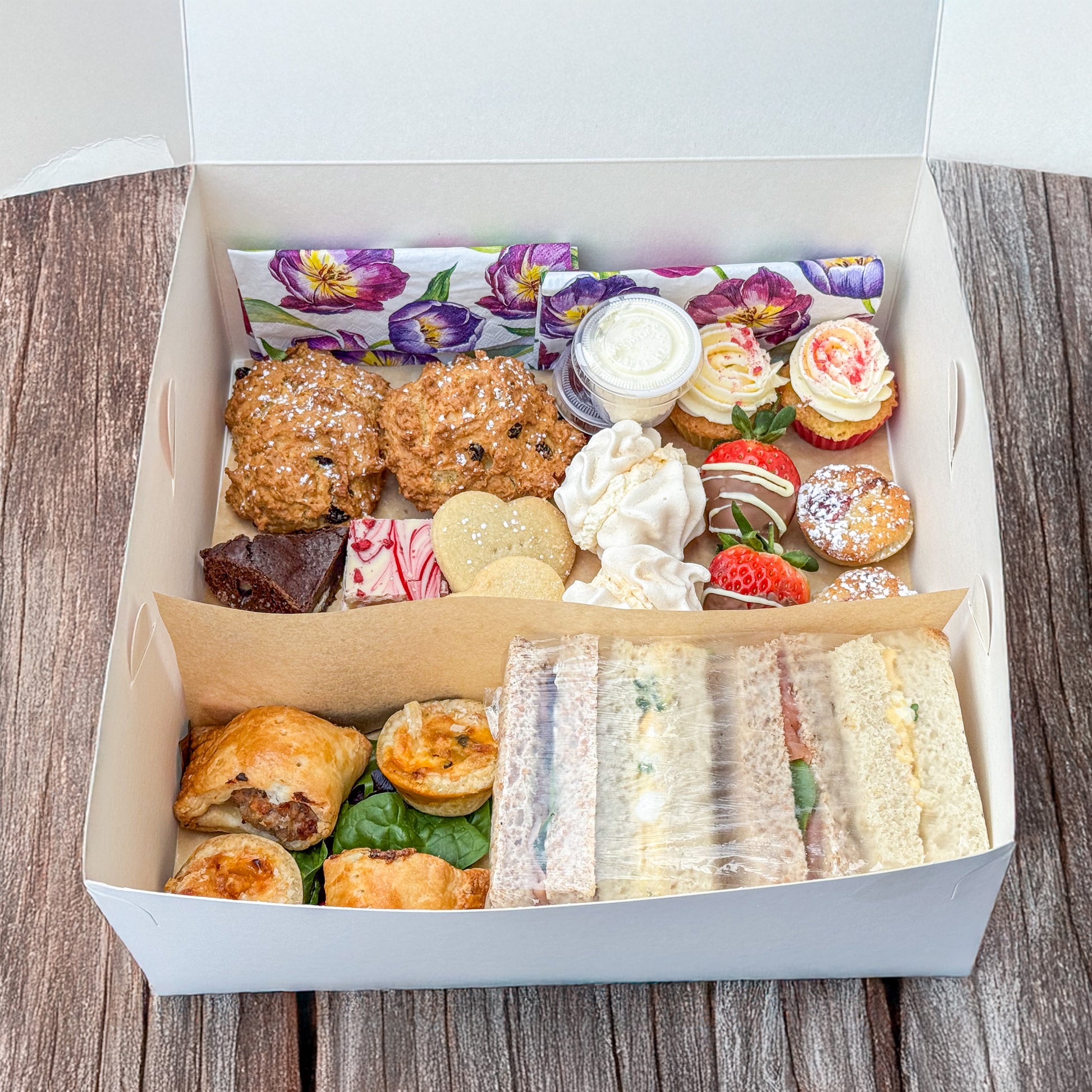 Available for take away from the Farm Shop. Afternoon tea contents may vary depending on availability.