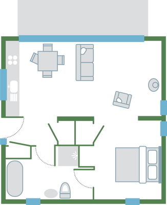 It isn’t all about the outside though! Receive a cosy hug when you enter with the underfloor air source heating warming the entire slate tile flooring and feel welcomingly cocooned by the mellow plywood work-of-art interior.